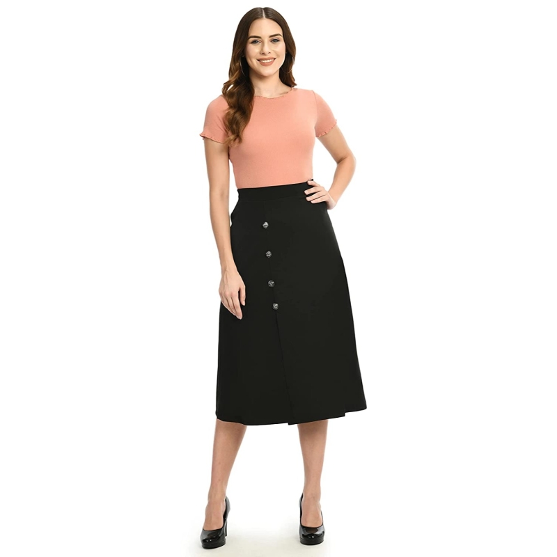 Allen Solly Midi Skirt with Side Slit and Buttons
