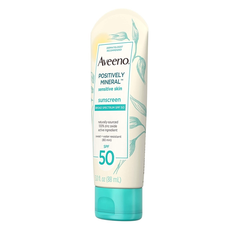 Aveeno Positively Mineral Sensitive Skin Daily Sunscreen Lotion with SPF 50 Non-Greasy