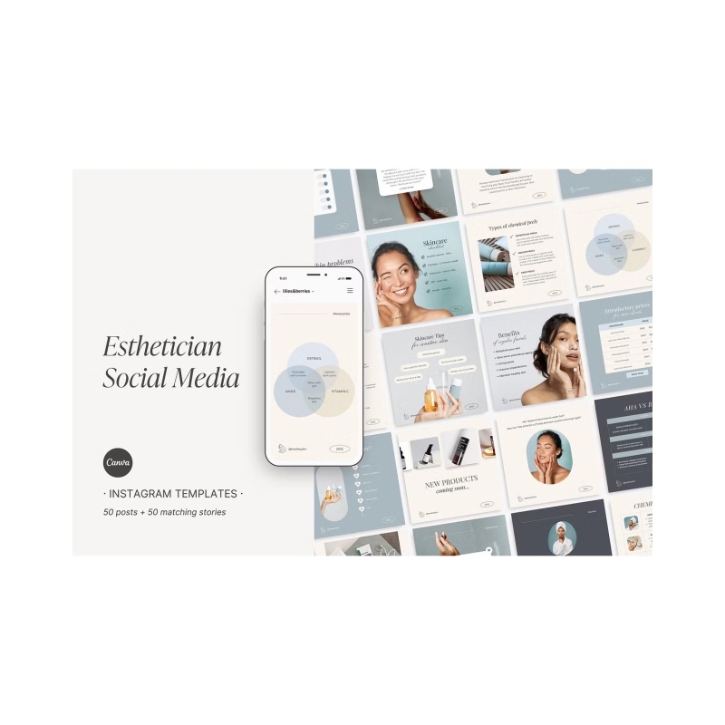 If you are an active Instagram user and want to take your game to the next level, have a look at these Canva Instagram templates for Estheticians and Beauty Business Owners! They will help you design a cohesive Instagram feed to bring in more followers.