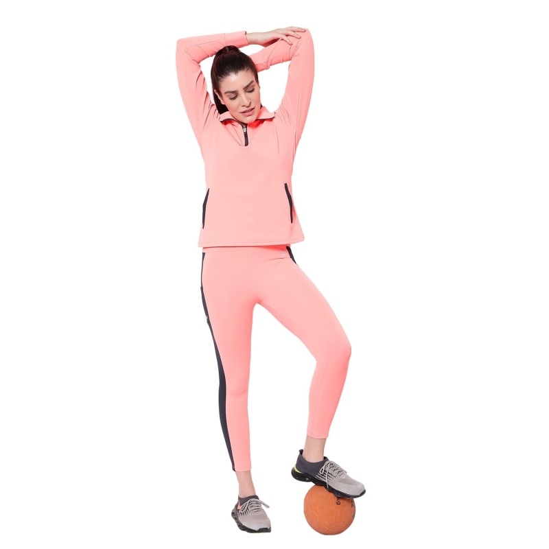 Constructed with sweat wicking fabric, this track suit is practical and stylish simultaneously.