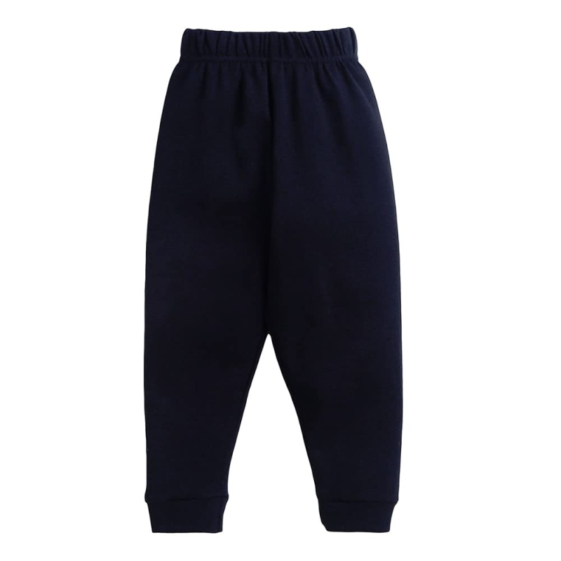Hopscotch Boys Cotton Solid Text Print Top and Pajama Set in Navy Color