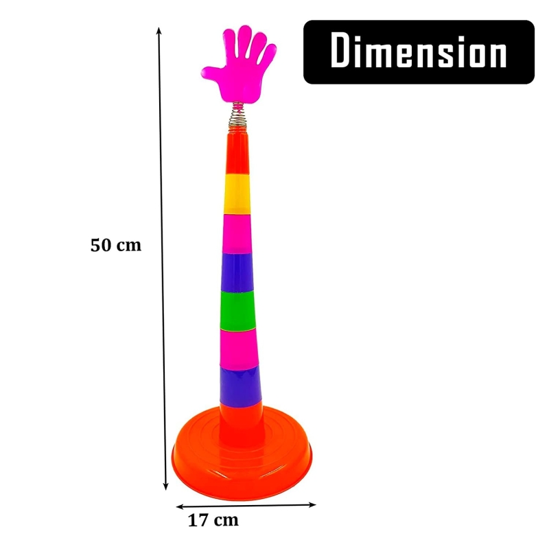 Quoits Ring Toss Games for Kids: The pack contains a set of Quoits ring Toss Game which consists of 8 Rings, 1 Base, 7 normal cones and 1 cone with spring attached hand figure. The hands attached to the top cone adds more fun to this game and makes this ring throwing game more exciting.