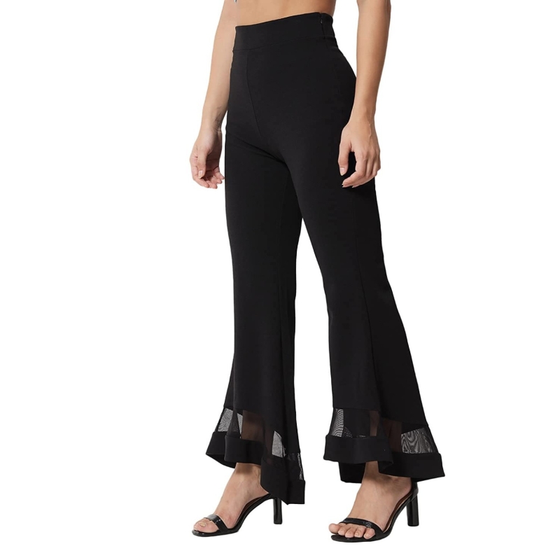 KOTTY المرأة العادية طول جيت أسود بنطلون سادة