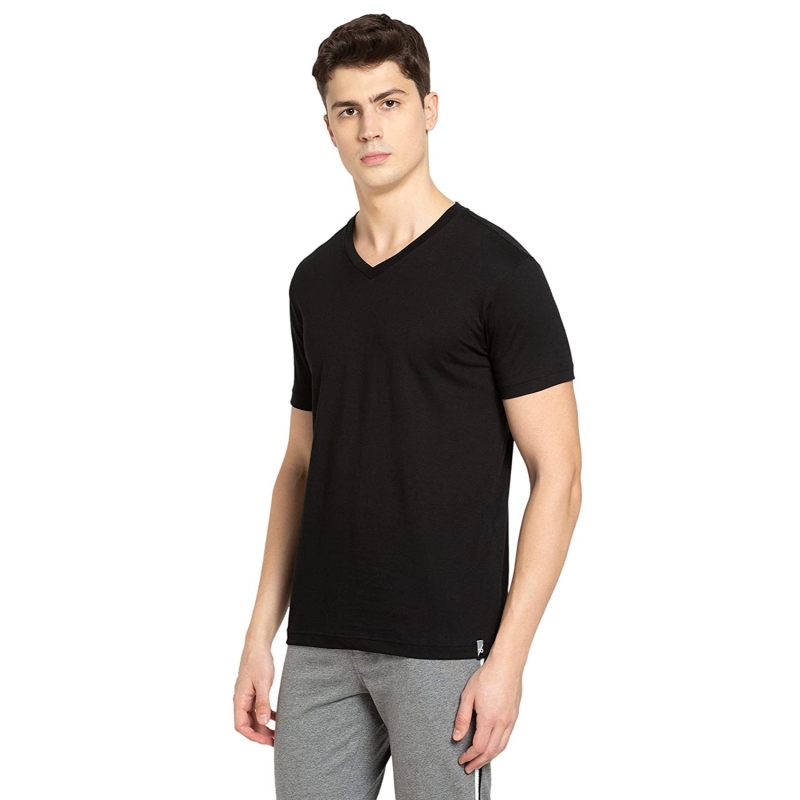 الرجال سوبر بتمشيط القطن الغنية الصلبة الخامس الرقبة نصف كم تي شيرت