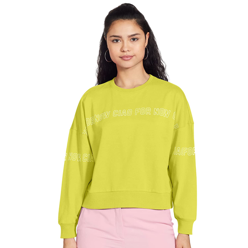 فقط النساء القطن طاقم الرقبة سويت شيرت