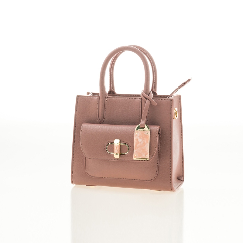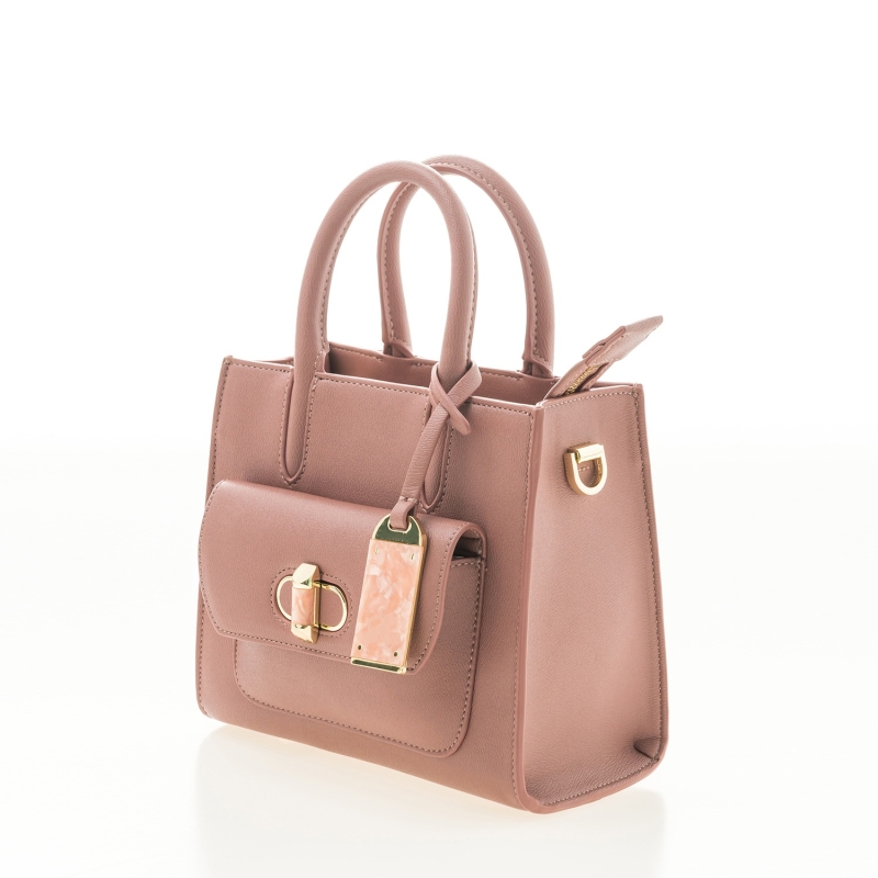 حقيبة يد مبطنة باللون الوردي